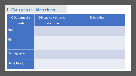 1. Các dạng địa hình chính Các dạng địa