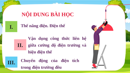 ĐIỆN THẾ VÀ THẾ NĂNG ĐIỆN NỘI DUNG BÀI HỌC I.