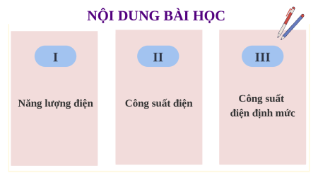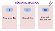 VÀ CÔNG SUẤT ĐIỆN. NỘI DUNG BÀI HỌC I II III Năng lượng điện Công suất điện Công suất điện định mức