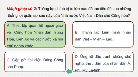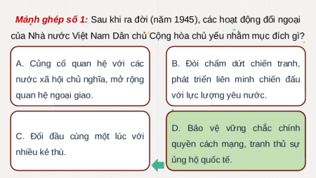 Giáo án Powerpoint Bài 13 Lịch sử 12 Kết nối tri thức: Hoạt động đối ngoại của Việt Nam trong kháng chiến chống Pháp (1945 - 1954) và chống Mỹ (1954 - 1975)