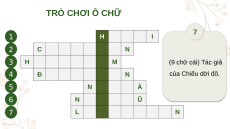 ĐẾN VỚI BÀI HỌC MỚI! TRÒ CHƠI Ô CHỮ 1 234567 1 H À N Ộ I 2 C H Ợ P H I Ê N (8 chữ cái) Tên gọi (6 chữ cái) Tên của 3 H O À N K I Ế M (5 (8 chữ cái) Th ê ủ n đ g ô ọ i mộ (5 t (9 loạ ch i ữ ch cá ợ i) i) đặ Tê Tá c n c biệ gọ giả ti khá kh m V c á ột iệ củ c t t a roN củn a H a g m ồ Tn . h Gươ ă h n m g ững 4 Đ Ô N G Q U A N khcủ á củ a c a cá củ C a h c d sô iếu ânng dờ ti ộ H c ồn đô.g Lo ch ng iếc – t H rốnàg Nđộồing 5 N H Ị H À vùng cao ở Việt Nam Đông Sơn tiêu biểu 6 N G Ọ C L Ũ 7 L Ý C Ô N G U Ẩ N BÀI 13: