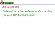 - Đã bao giờ em bị thương do các vật sắc nhọn chưa.