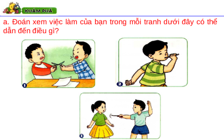 a. Đoán xem việc làm của bạn trong mỗi tranh dưới đây có thể dẫn đến điều gì?