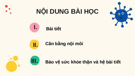 VÀ CÂN BẰNG NỘI MÔI NỘI DUNG BÀI HỌC I. Bài tiết II. Cân bằng nội môi III.