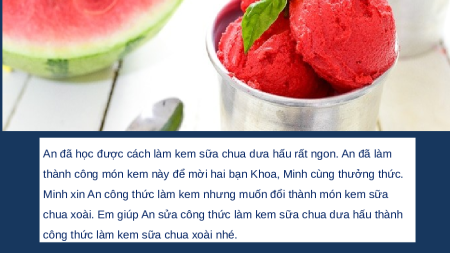 chua xoài. Em giúp An sửa công thức làm kem sữa chua dưa hấu thành