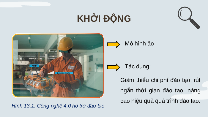 Hình 13.1. Công nghệ 4.0 hỗ trợ đào tạo KHỞI ĐỘNG Mô hình ảo Tác dụng:
