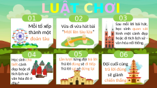 Thứ … ngày … tháng … năm … T ự nhiên và xã h i ộ THỰC HÀNH KHÁM PHÁ CUỘC SỐNG XUNG QUANH EM KHỞI KHỞI ĐOÀN T Đ À Ộ U N X ĐỘNG G ÌNH XỊCH Lê Thị Oanh LUẬT CHƠI 01 02 03 Mỗi tổ xếp Vừa đi vừa hát bài Sau mỗi lời bài hát, học sinh quan sát thành một “Mời lên tàu lửa” hình một cảnh đẹp đoàn tàu hoặc di tích lịch sử - văn hóa nổi tiếng. 04 05 06 Học sinh cho