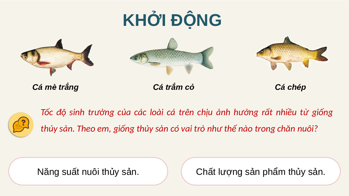BÀI HỌC NGÀY HÔM NAY! KHỞI ĐỘNG Cá mè trắng Cá trắm cỏ Cá chép
