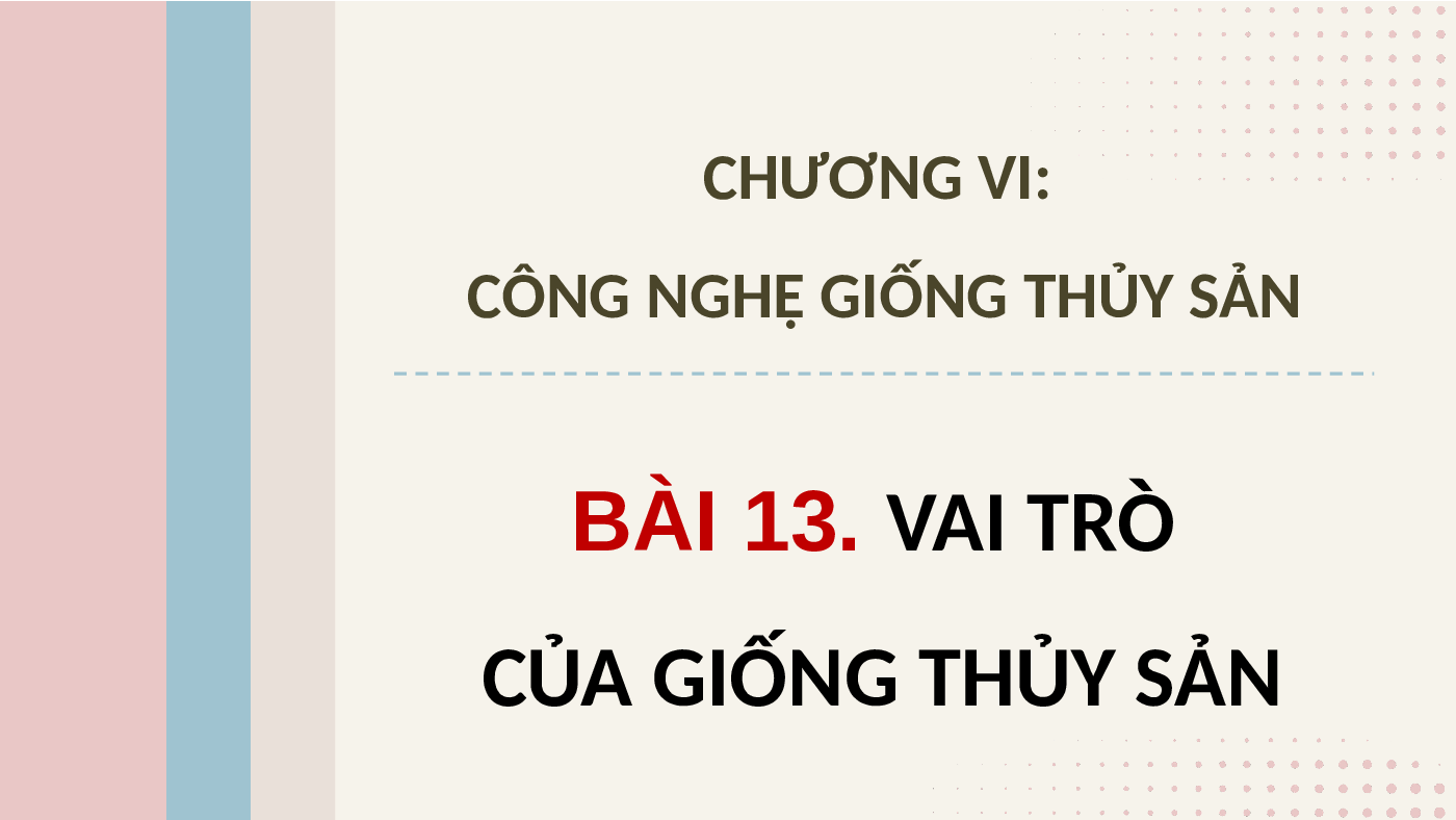 CÔNG NGHỆ GIỐNG THỦY SẢN BÀI 13. VAI TRÒ