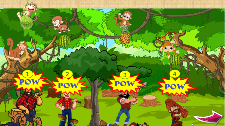 - Click vào chú khỉ: quả trên tay sẽ rơi trúng đầu lâm tặc.
