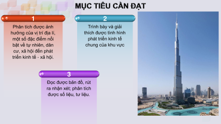 ĐỊA LÍ KHU VỰC VÀ QUỐC GIA GV: TRẦN THỊ HÀ KHU VỰC TÂY NAM Á BÀI 14: VỊ TRÍ ĐỊA LÍ, ĐIỀU KIỆN TỰ NHIÊN, DÂN CƯ, XÃ HỘI VÀ KINH TẾ KHU VỰC TÂY NAM Á 1 2 Phân tích được ảnh Trình bày và giải