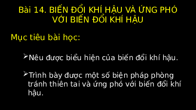 Bài 14. BIẾN ĐỔI KHÍ HẬU VÀ ỨNG PHÓ VỚI BIẾN ĐỔI KHÍ HẬU Mục tiêu bài học: