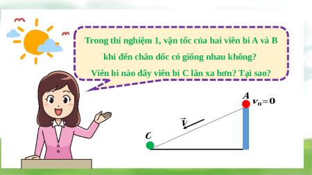 Viên bi nào đẩy viên bi C lăn xa hơn? Tại sao?