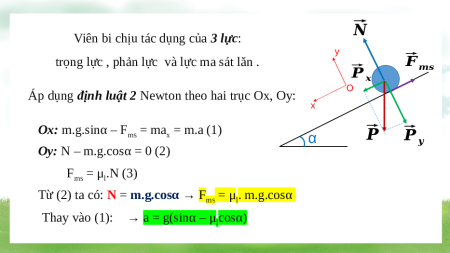Áp dụng định luật 2 Newton theo hai trục Ox, Oy: x