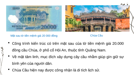 Mặt sau tờ tiền mệnh giá 20 000 đồng Chùa Cầu