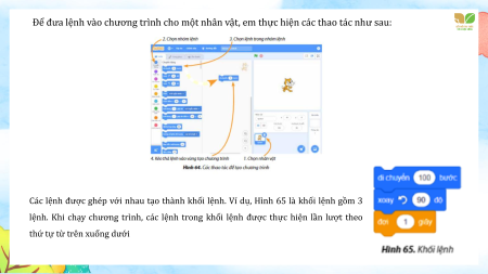 Các lệnh được ghép với nhau tạo thành khối lệnh. Ví dụ, Hình 65 là khối lệnh gồm 3