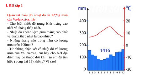 NHIỆT ĐỘ VÀ LƯỢNG MƯA 1. Bài tập 1
