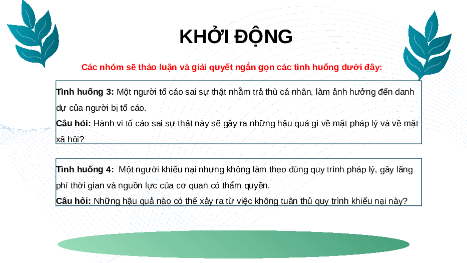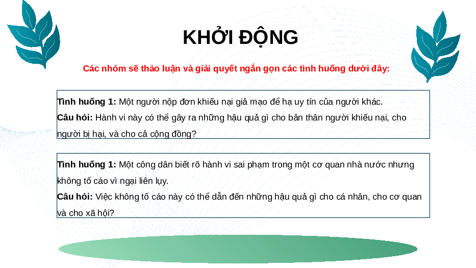 Các nhóm sẽ thảo luận và giải quyết ngắn gọn các tình huống dưới đây: