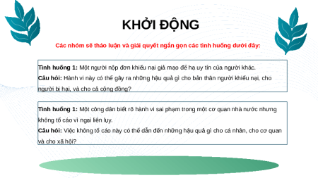 Câu hỏi: Việc không tố cáo này có thể dẫn đến những hậu quả gì cho cá nhân, cho cơ quan và cho xã hội? KHỞI ĐỘNG