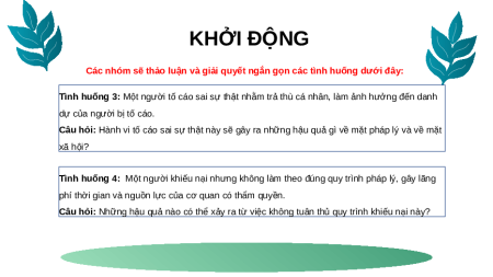 Các nhóm sẽ thảo luận và giải quyết ngắn gọn các tình huống dưới đây: