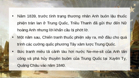 công và phá hủy thuyền buồm của Trung Quốc tại Xuyên Tỵ, Quảng Châu vào năm 1840. BÀI 15: TRUNG QUỐC