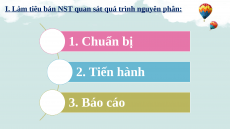 I. Làm tiêu bản NST quan sát quá trình nguyên phân: 1. Chuẩn bị 2. Tiến hành 3. Báo cáo