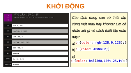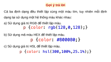 c) Sử dụng giá trị HSL để thiết lập màu. kenhgiaovien •