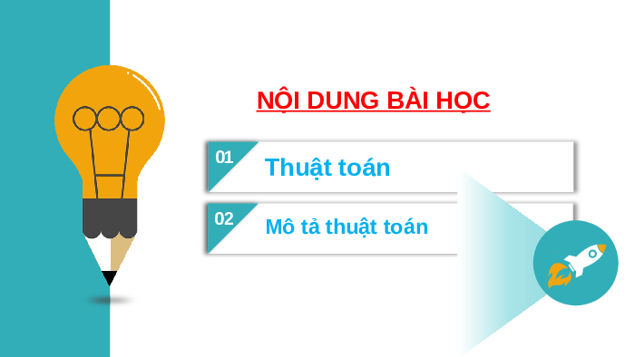 BÀI 15: THUẬT TOÁN (2 TIẾT) NỘI DUNG BÀI HỌC 01 Thuật toán 02 Mô tả thuật toán 04