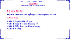 Đọc trôi chảy toàn bài, ngắt nghỉ câu đúng theo thể thơ. 2. Chia đoạn.