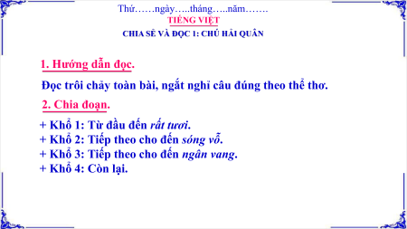 Thứ……ngày…. tháng…. năm……. TIẾNG VIỆT