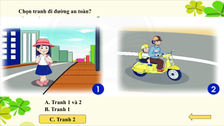 Chọn tranh đi đường an toàn? A. Tranh 1 và 2 B. Tranh 1 C. T C r. an Tr h a 2 nh 2