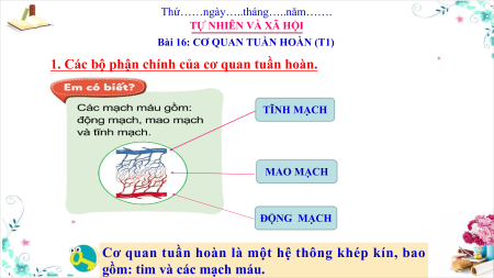 BÀI 16: CƠ QUAN TUẦN HOÀN (T1)