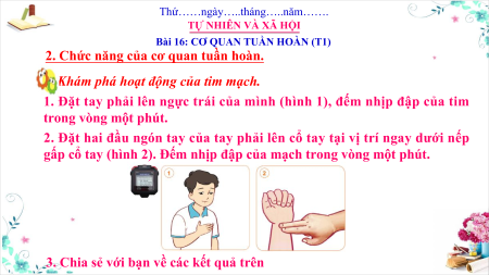 1. Đặt tay phải lên ngực trái của mình (hình 1), đếm nhịp đập của tim