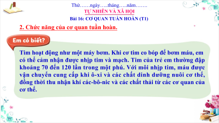 Giáo án Powerpoint Bài 16: Cơ quan tuần hoàn Tự nhiên xã hội lớp 3 Cánh diều