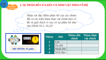 I. SỰ PHÂN BỐ CỦA ĐẤT VÀ SINH VẬT THEO VĨ ĐỘ Hình thành kiến thức