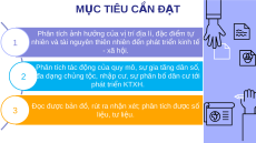 nhiên và tài nguyên thiên nhiên đ n ế phát tri n ể kinh t ế - xã h i ộ . Phân tích tác đ n ộ g c a ủ quy mô, s ự gia tăng dân s , ố 2 đa d n ạ g chủng t c, ộ nh p ậ c , ư s ự phân b ố dân c ư t i ớ phát triển KTXH. 3 Đ c ọ được b n ả đ , ồ rút ra nh n ậ xét; phân tích đư c ợ s ố li u ệ , tư li u ệ .