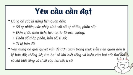 lệ bản đồ; thống kê; tìm hai số khi biết tổng và hiệu của hai số; tìm hai