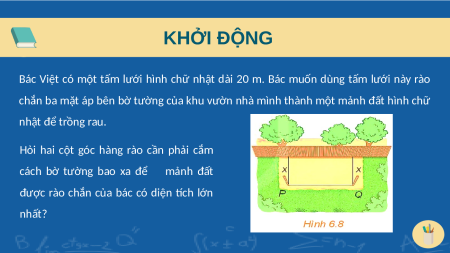 Bác Việt có một tấm lưới hình chữ nhật dài 20 m. Bác muốn dùng tấm lưới này rào