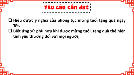 ❑ Hiểu được ý nghĩa của phong tục mừng tuổi tặng quà ngày Tết.