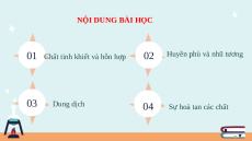 01 Chất tinh khiết và hỗn hợp Huyền phù và nhũ tương 02 03 Dung dịch 04 Sự hoà tan các chất