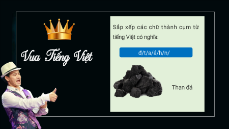 Sắp xếp các chữ thành cụm từ tiếng Việt có nghĩa: Vua Tiếng Việt đ/t/a/á/h/n/ Than đá