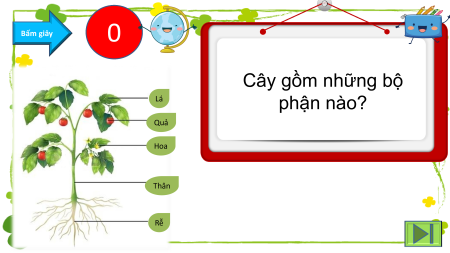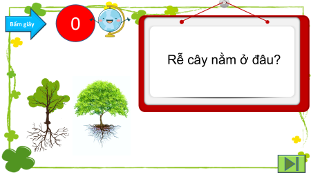 Học tiếp Ô CỬA 1 2 BÍ MẬT 3 4 Bấm giây 15 14 13 12 11 10 09 08 07 06 05 04 03 02 01 0 Rễ cây nằm ở đâu?