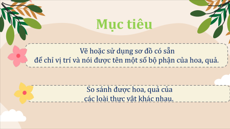 để chỉ vị trí và nói được tên một số bộ phận của hoa, quả.