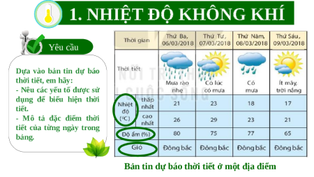 1. NHIỆT ĐỘ KHÔNG KHÍ Yêu cầu Xem video, cho biết đây là bản tin gì? DỰ BÁO THỜI TIẾT