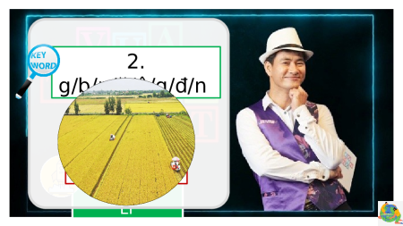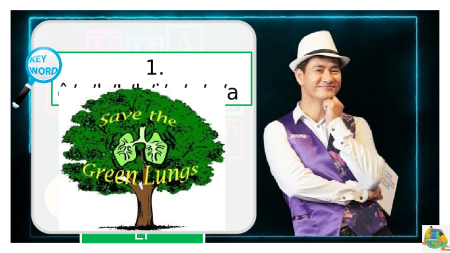 GV chiếu từ khóa đã bị xáo trộn HS viết đáp án ra bảng nhóm trong 5 giây Nhiều đáp án đúng nhất => 1. ô/a/h/L/h/i/p/x/n/a LÁ PHỔI XANH TÔI YÊU ĐỊA LÝ 2. g/b/n/ă/ô/g/đ/n ĐỒNG BẰNG TÔI YÊU ĐỊA LÝ