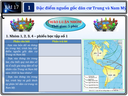 ị óa Trung và Nam Mỹ 2 Văn hóa Mỹ Latinh 3 Luy n t ệ ập và vận d ng ụ 4 BÀI 17 1 Đặc đi m ể ngu n g ồ c d ố ân c T ư rung và Nam Mỹ THẢO LUẬN NHÓM Thời gian: 5 phút