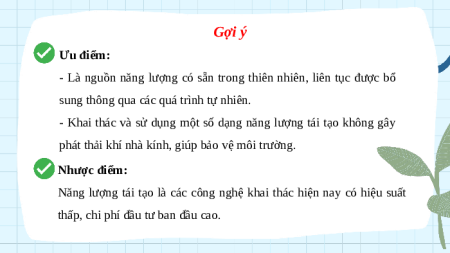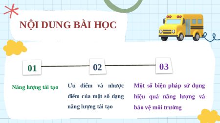 - Khai thác và sử dụng một số dạng năng lượng tái tạo không gây