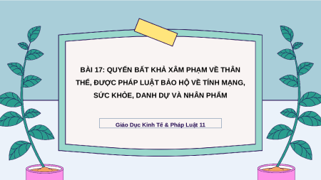 Giáo án Powerpoint Bài 17 KTPL 11 Chân trời sáng tạo (2024): Quyền bất khả xâm phạm về thân thể, được pháp luật bảo hộ