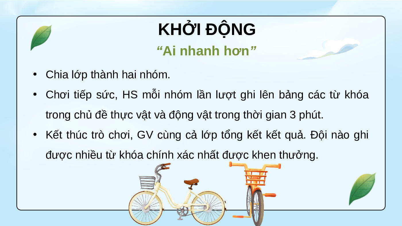 THỰC VẬT VÀ ĐỘNG VẬT KHỞI ĐỘNG