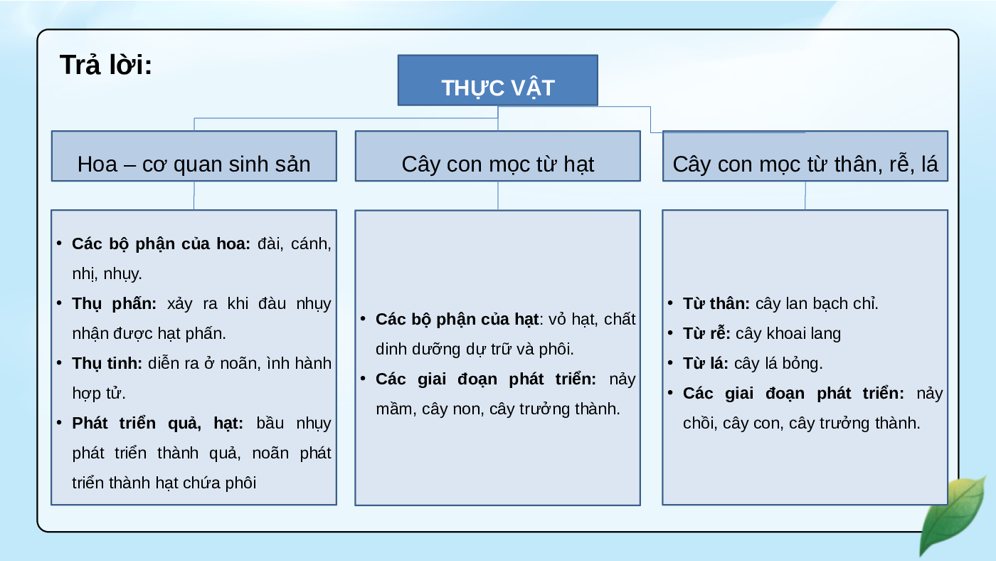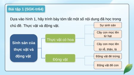chủ đề. Thực vật và động vật. Sự sinh sản Cây con mọc lên từ hạt Thực vật có hoa Sinh sản của Cây con mọc lên thực vật và từ rễ, thân, lá động vật Động vật đẻ trứng Động vật Động vật đẻ con